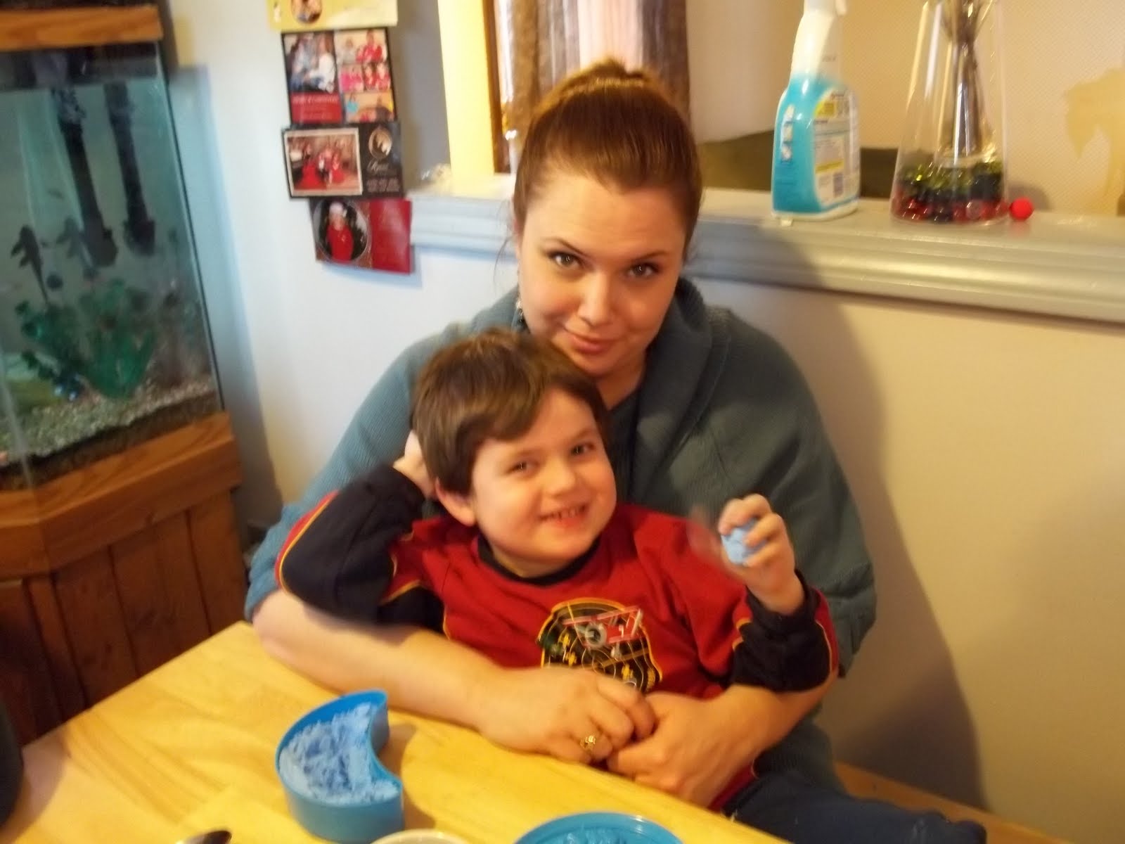Jesse found a leopard gecko and they took it out so he could get a closer look, fuzzy picture, but it is a gecko trust me